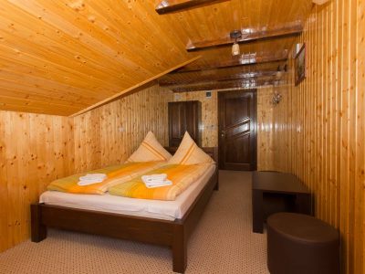 Cabana oferă 14 locuri de cazare repartizate în 6 camere, amenajate cu gust și dotate cu facilități moderne: • 2 camere triple (cu pat matrimonial și pat single), fiecare cu balcon, baie proprie cu duș, televizor cu ecran plat și dulap; • 4 camere duble cu pat matrimonial, balcon, baie proprie cu duș, televizor cu ecran plat și dulap.