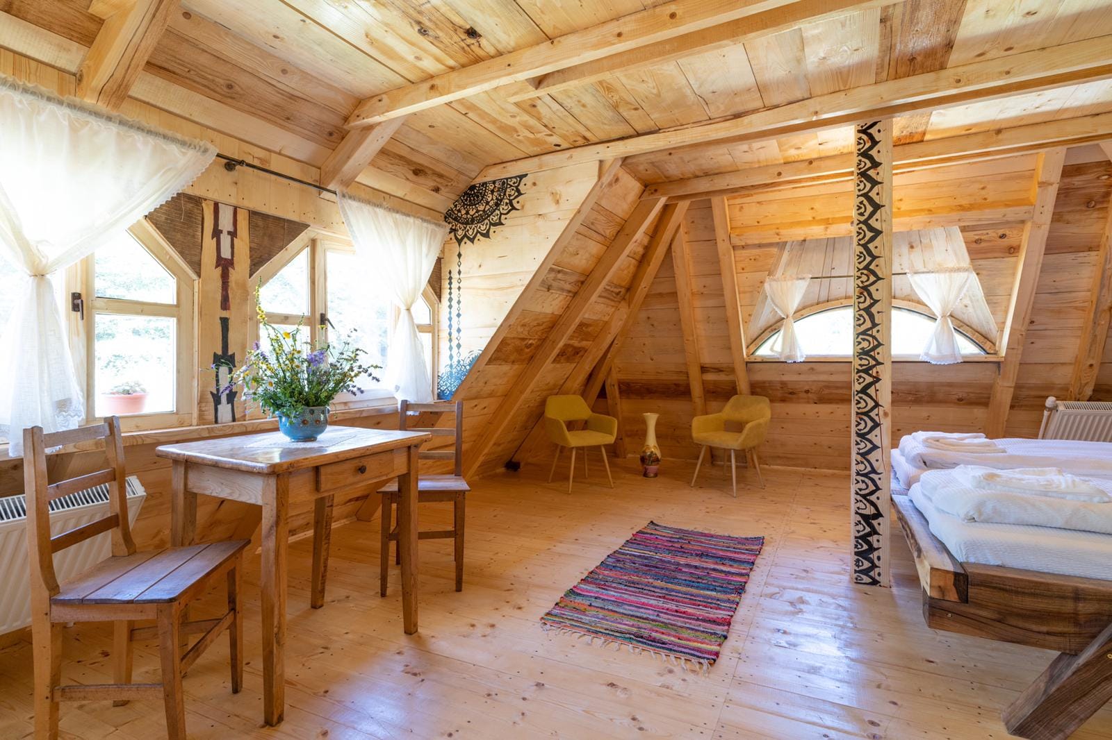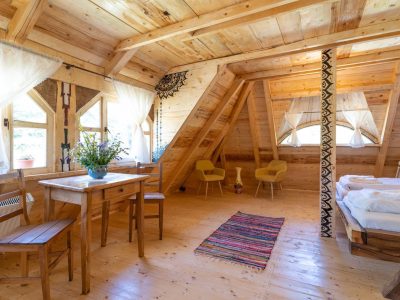Casa Bunicilor este formată din 2 dormitoare, unul de 2 persoane și unul de 4 persoane, fiecare având baie proprie și o bucătărie cu strictul necesar pentru a găti.
