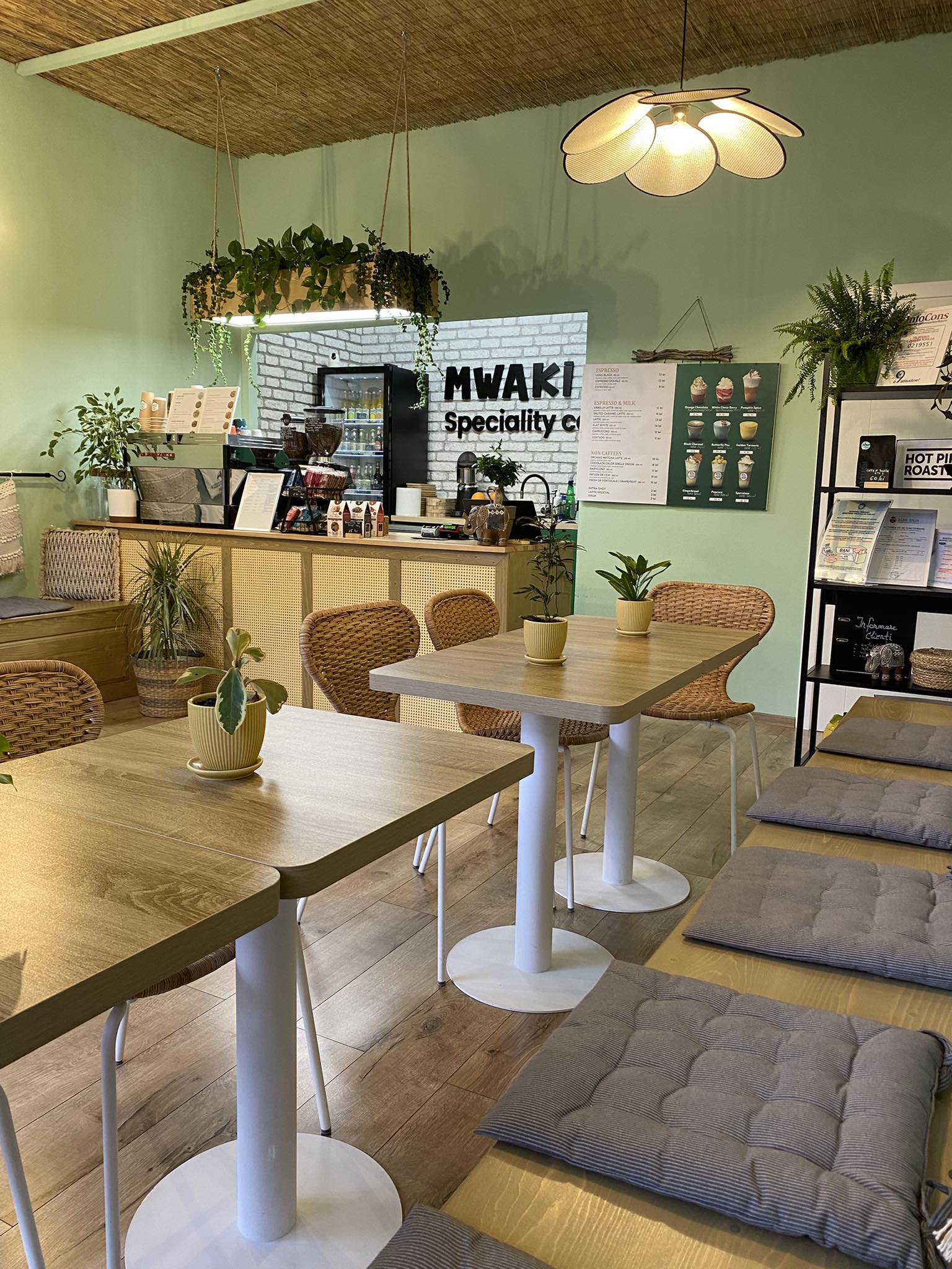 La MWAKI, cafeaua este mai mult decât o băutură – este o călătorie, folosind boabe de cafea atent selecționate, origini variate precum Etiopia, Columbia, Brazilia sau Guatemala, pentru a-ți oferi preparate clasice reinterpretate și băuturi speciale cu ingrediente naturale, siropuri și arome surprinzătoare.