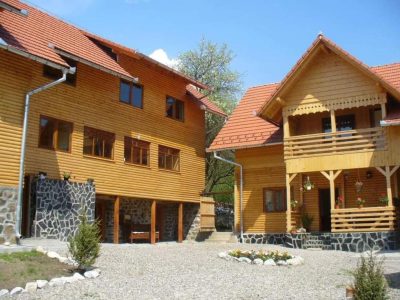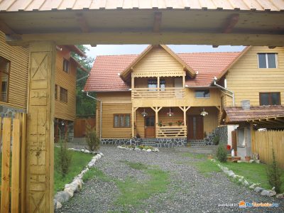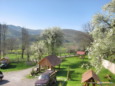 La exterior pensiunea vă pune la dispoziţie 2 căsuțe a câte 6 locuri cu baie proprie și paturi supraetajate, o grădină de 500 mp, cu pomi, leagăn, o fântână cu apă potabilă, un loc de joacă pentru copii și foișoare.
