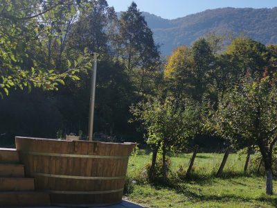 Terasa orientată spre pădure vă invită să vă relaxați în aer liber. Avem la dispoziție un grătar și un ciubăr încălzit, rezervările pentru ciubărul se fac cu cel puțin 24 de ore înainte.
