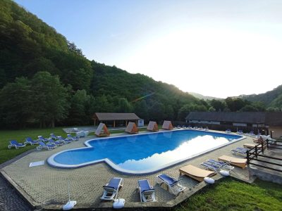 Activități: Piscina în aer liber îi răsfață pe doritorii de distracție si relaxare. Piscina deservește oaspeții pensiunii, turiștii altor pensiuni din împrejurimi și în limita locurilor disponibile avem și abonati din oraș. Piscina este deschisă în perioada 27 iunie-17august zilnic intre orele 11-19. Tinerii se pot bucura de patinoarul orasului in sezonul rece.