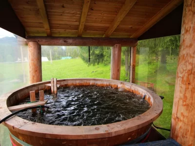 Multumită construcţiei din lemn de brad, oferă un confort deosebit prin aspect, culoare şi miros.