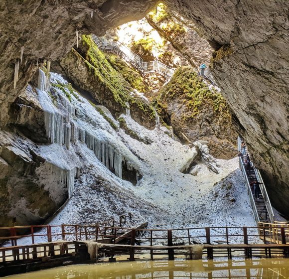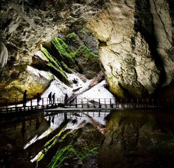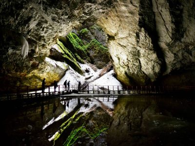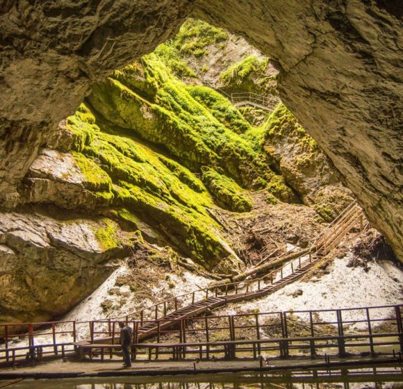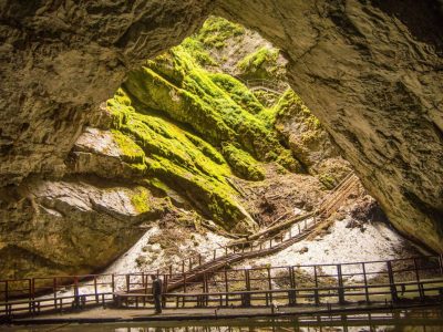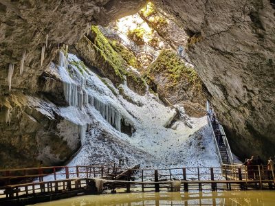 Dacă ești în căutarea unei aventuri inedite, departe de traseele turistice obișnuite, Peștera Scărișoara este o alegere excelentă. Situată în Munții Apuseni, această peșteră spectaculoasă ascunde unul dintre cei mai mari ghețari subterani din Europa, situat la o altitudine de 1165 de metri, fiind un fenomen natural impresionant care atrage turiști din întreaga lume. Această minune a naturii îți oferă o experiență de neuitat, îmbinând aventura explorării cu fascinantele sale aspecte științifice. La intrarea în peșteră, vizitatorii descoperă un peisaj subteran impresionant. Blocul de gheață se întinde pe o suprafață de peste 3.000 m² și are un volum de aproximativ 118.000 m³. Este un mediu fascinant, unde fiecare strat de gheață păstrează informații valoroase despre istoria climatică a regiunii. Straturile inferioare ale ghețarului au o vechime de peste 10.000 de ani, formându-se cu mult înainte ca oamenii să înceapă să cultive pământul. O vizită în această peșteră oferă oportunitatea de a explora un loc care reflectă evoluția naturală a planetei noastre. Peștera Scărișoara este situată în Parcul Natural Apuseni, județul Alba, o regiune cunoscută pentru frumusețea sa naturală și bogăția formațiunilor carstice. Mai exact, se află în comuna Gârda de Sus, într-o zonă carstică impresionantă care atrage anual mii de vizitatori. Dacă dorești să găsești ușor Peștera Scărișoara pe hartă, coordonatele GPS sunt 46°29’23″N 22°48’35″E. Accesibilitatea peșterii o face o destinație ideală pentru o gamă diversă de vizitatori, de la familii cu copii până la aventurieri pasionați. Poți ajunge la peșteră din mai multe direcții, fiind la aproximativ 100 km de Alba Iulia și 140 km de Cluj-Napoca. Această poziționare o face perfectă pentru o excursie de o zi sau un weekend prelungit în natură. Iată cum poți ajunge: Cu mașina: Din Alba Iulia, urmează DN75 spre Câmpeni, apoi spre Gârda de Sus. De aici ai două opțiuni: un drum asfaltat de 23 km până în cătunul Ghețar; un drum forestier de 12 km de lângă Gura Ordâncușei. Pe jos: Pentru cei pasionați de drumeții, un traseu marcat cu cruce roșie pornește din Gârda de Sus și se întinde pe aproximativ 10 km, oferind o experiență autentică în mijlocul naturii din Munții Apuseni.
