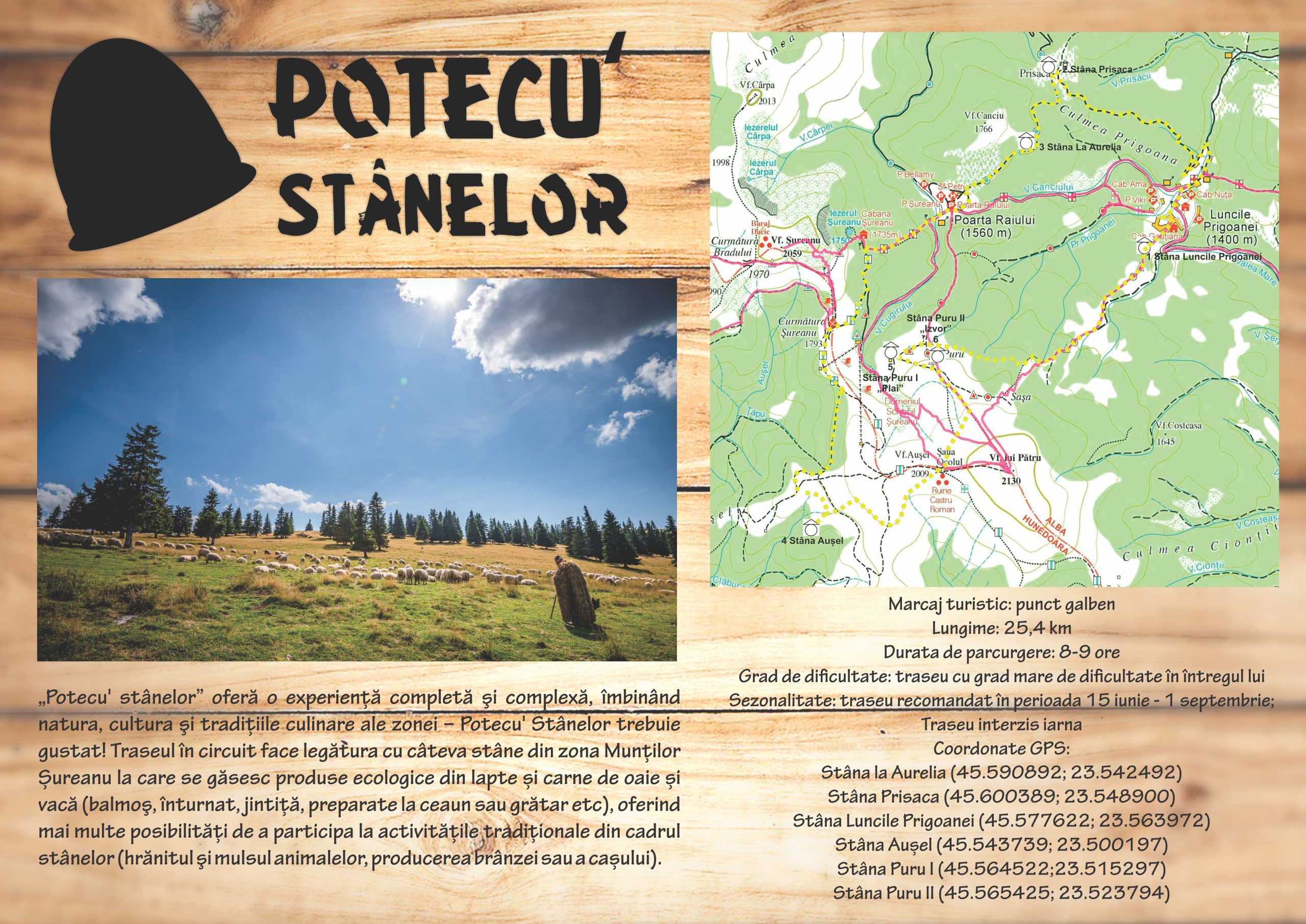 Este vorba despre un traseu tematic în circuit care face legătura cu câteva stâne din această zonă oferind turiştilor posibilitatea de a participa la activitățile tradiționale din cadrul stânelor.