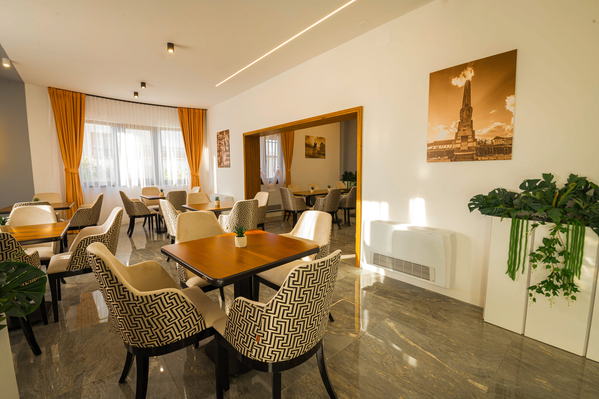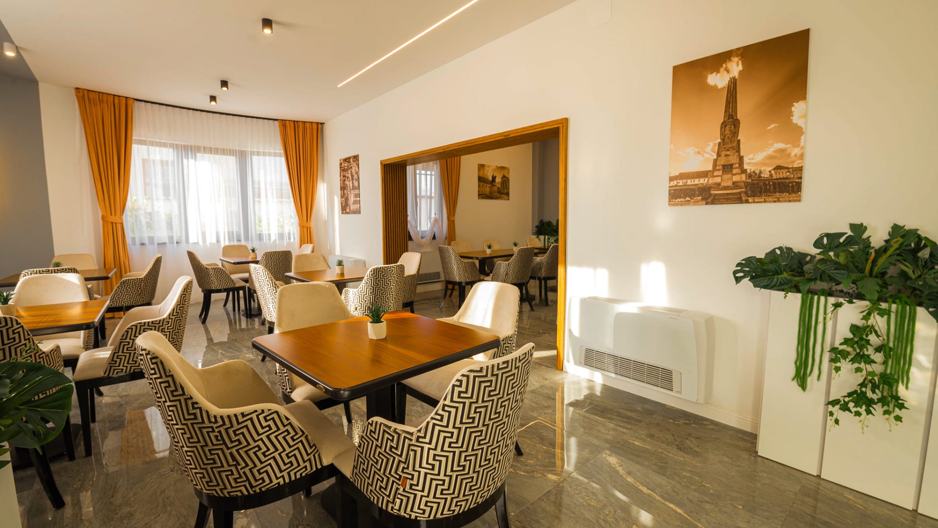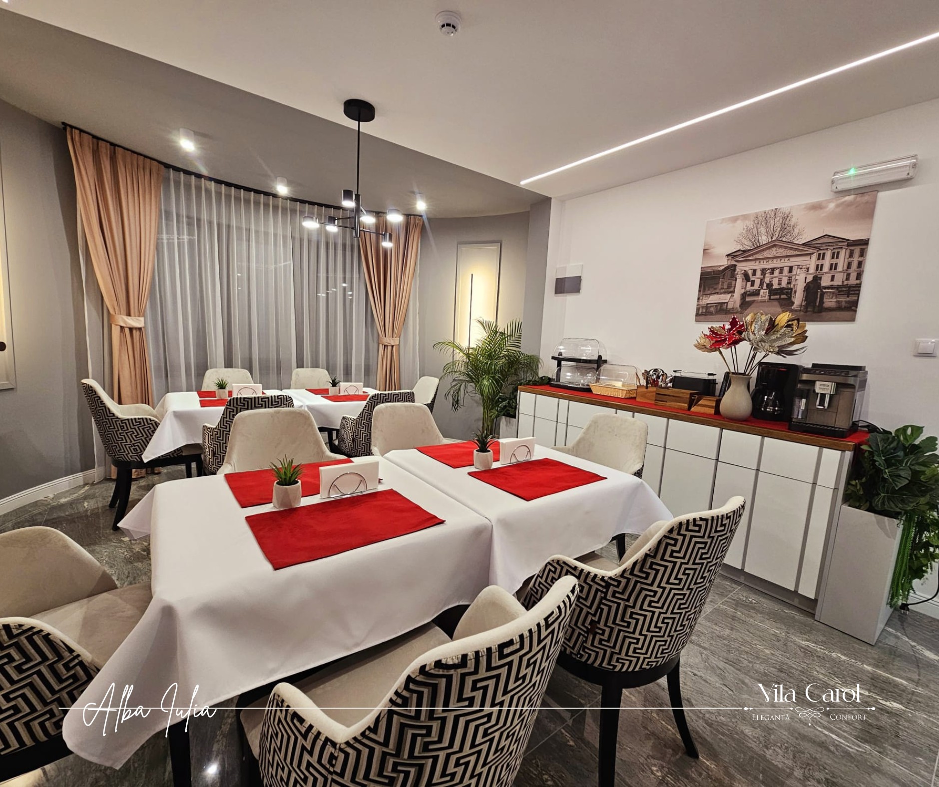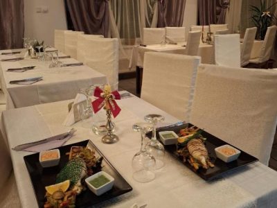 În partea din față a vilei se află o terasă mare, care aparține de restaurant. In restaurantul nostru puteți savura meniuri naționale și internaționale. De asemenea organizăm și petreceri tradiționale, mese festive sau jubileuri pentru societăți comerciale sau persoane private.